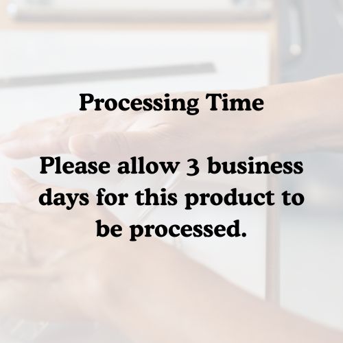 - My processing time is approx. 3 business days